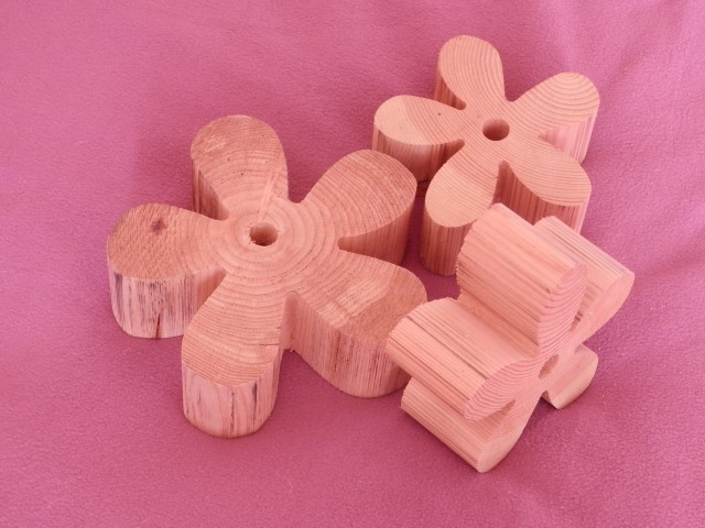Dekorative Blüten ... mit zentraler Loch-Bohrung ... in verschiedenen Größen möglich ... diese Blüten hier haben eine Größe von 21 und 16 cm ... unbehandelt - trotzdem sehr witterunsbeständig